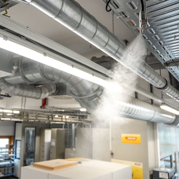 Ultrafeine Befeuchtung sorgt für gleichmäßiges Raumklima in der Anwendungstechnik von ADLER. -