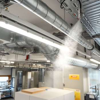 Ultra-fine humidification ensures a consistent indoor climate in ADLER's application technology. -